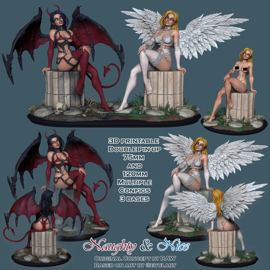 Naughty and Nice | Clothed or Nude | Resin 3D Printed Pinup | Ronin Arts Workshop