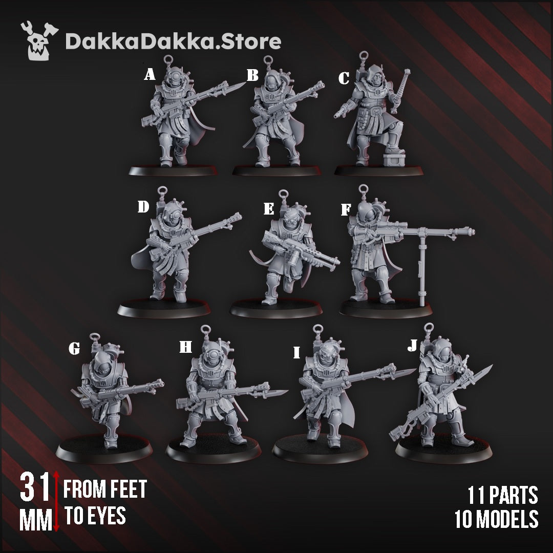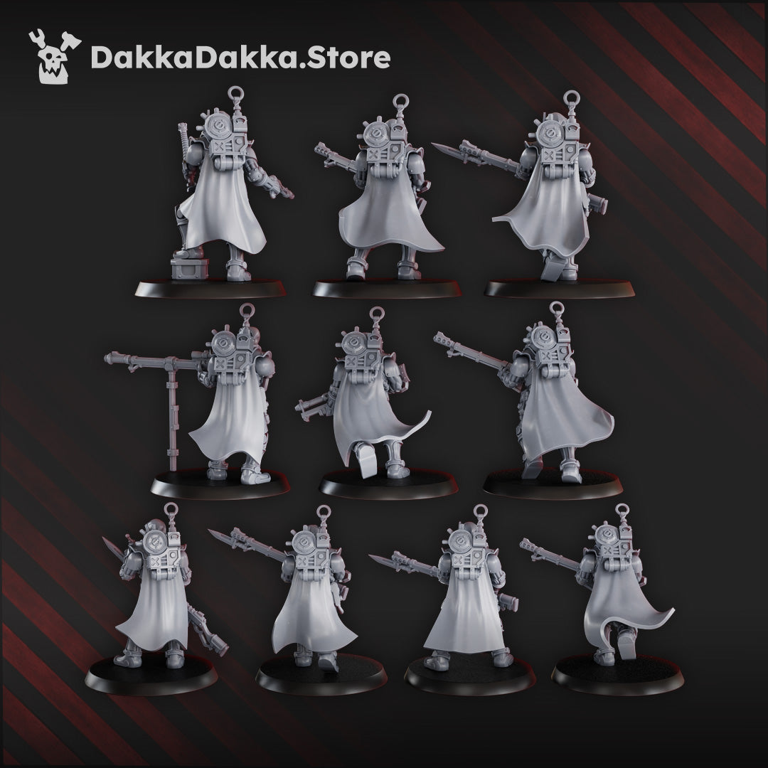 This pre-built squad of grimdark sci-fi infantry is crafted for 28mm–32mm scale tabletop wargaming. Each resin miniature comes fully assembled with rifles, special weapons, and cloaked armor, making them ideal as proxy models for techno-cult soldiers or futuristic skirmish forces. Designed for gamers and collectors who prefer detailed miniatures without assembly, these ready-to-paint figures bring versatility to any grimdark army roster. Part of Pluto’s Mechanized Legion range.