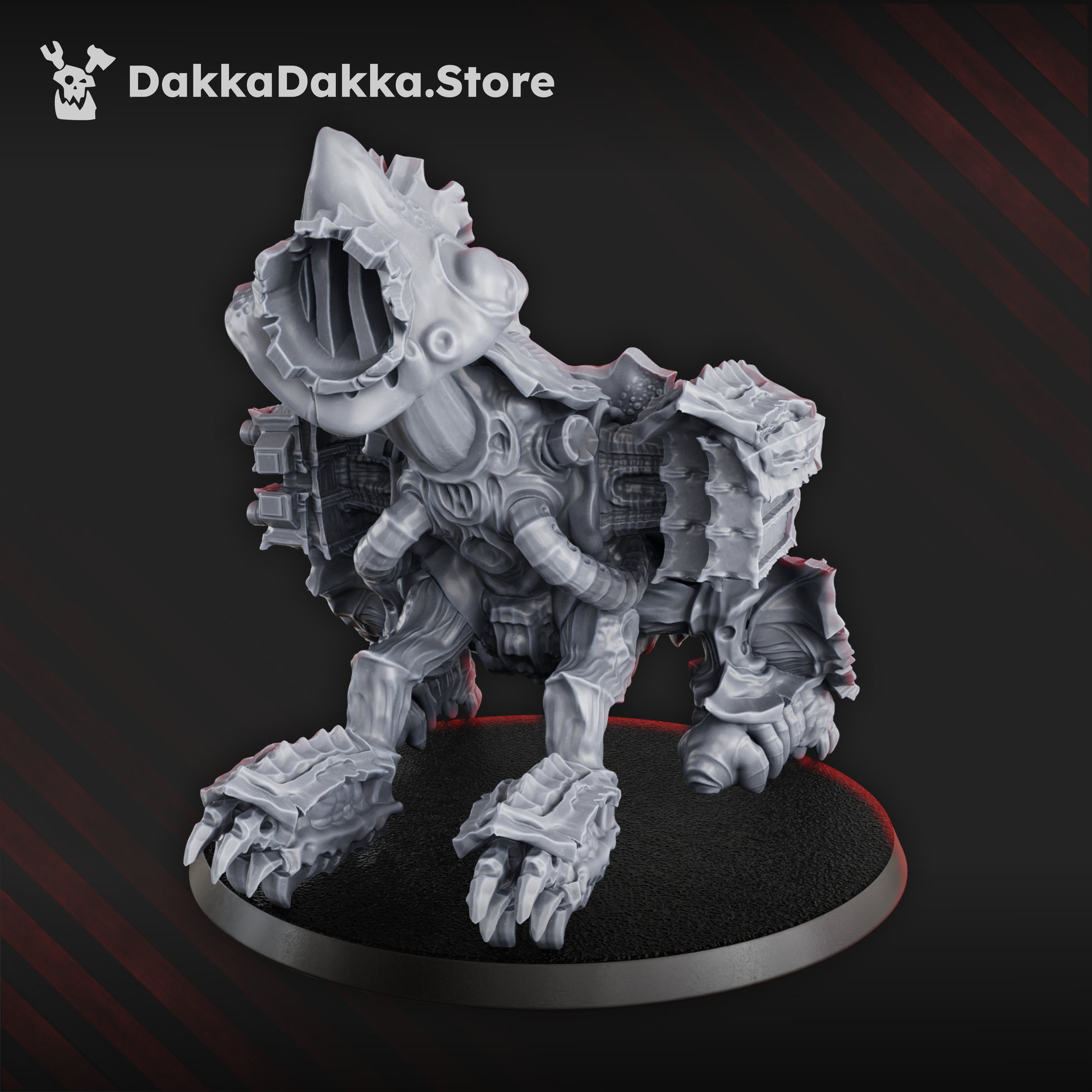 This multipart resin monster kit builds a hulking plague-war engine covered in ruptured armor plates, exposed muscle, and heavy organic cannons. The model is sized for large creature or daemon-engine roles in grim sci-fi armies. All parts are physically 3D printed in high-detail resin and intended for use in 28–32mm tabletop wargames.