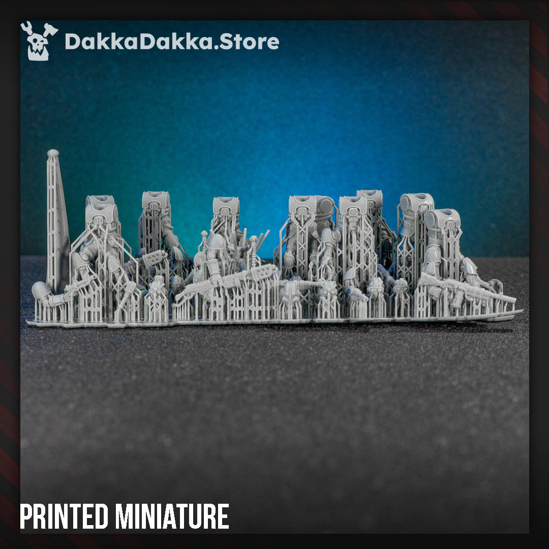 The Aerobellum Purgators Build Kit includes modular components for constructing flying mechanical infantry. Designed as part of the Pluto’s Mechanized Legion collection, these figures serve as ideal proxies for flying assault infantry in sci-fi tabletop games.