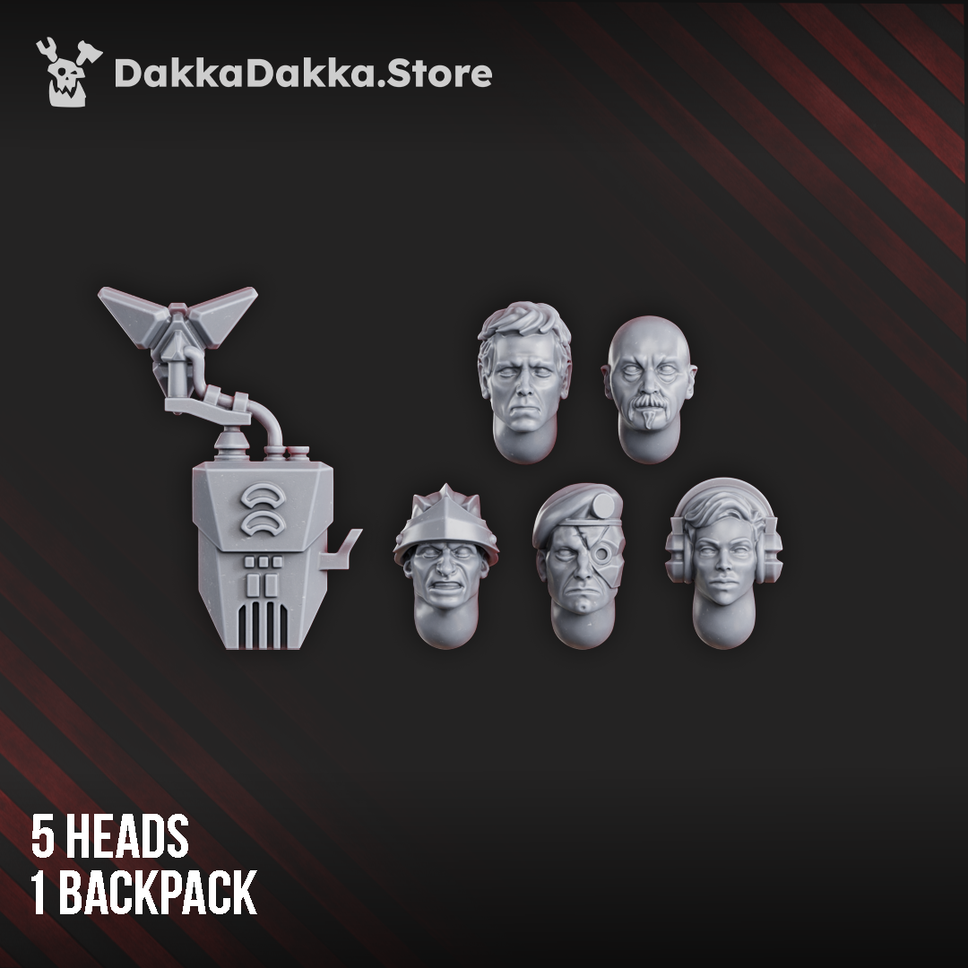 Generic body, head, and base selections are supplied from the available designs shown, while specific arm and weapon options can be selected individually. This set is ideal for grimdark sci-fi armies, command squads, kitbashing, and conversion projects.