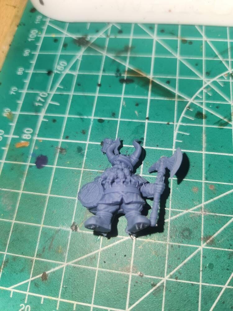 I forgot to get a photo before priming. It did not come with a base. Only 2 little bits from printing had to be shipped. The print quality shows all the detail, so very happy with this mini.