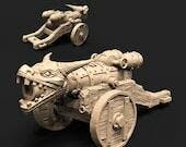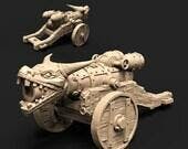 This beautiful 3D Printed miniature is suitable for any tabletop war gaming or RPG. The listed price is for a 32mm cannon with three crew.