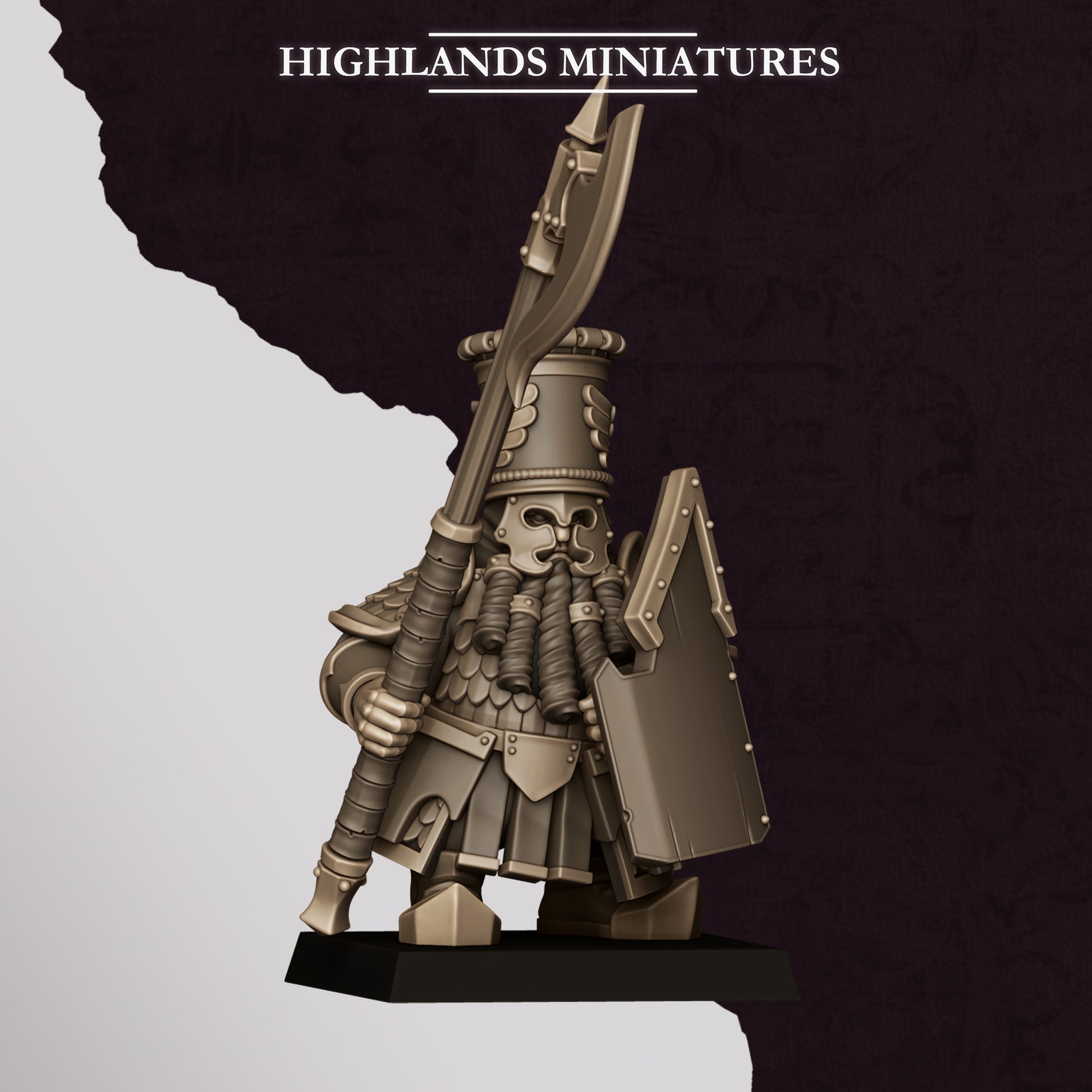 This 3D printed resin set includes the elite infantry of the Sons of Marduk heavily armored dark dwarves equipped with axes, hammers, and shields. Each model features detailed scale armor, crested helmets, and grim expressions suited for fantasy tabletop warfare. Supplied as high-quality physical resin prints, these models are fully compatible with major tabletop fantasy wargames and rank up well for traditionally sized regiments.