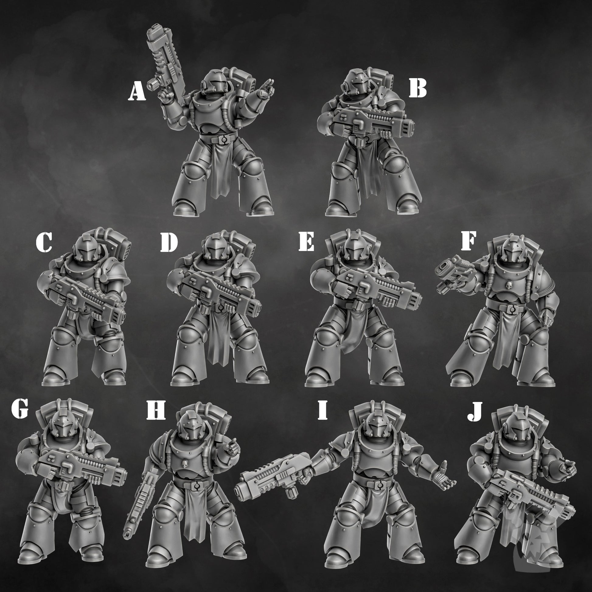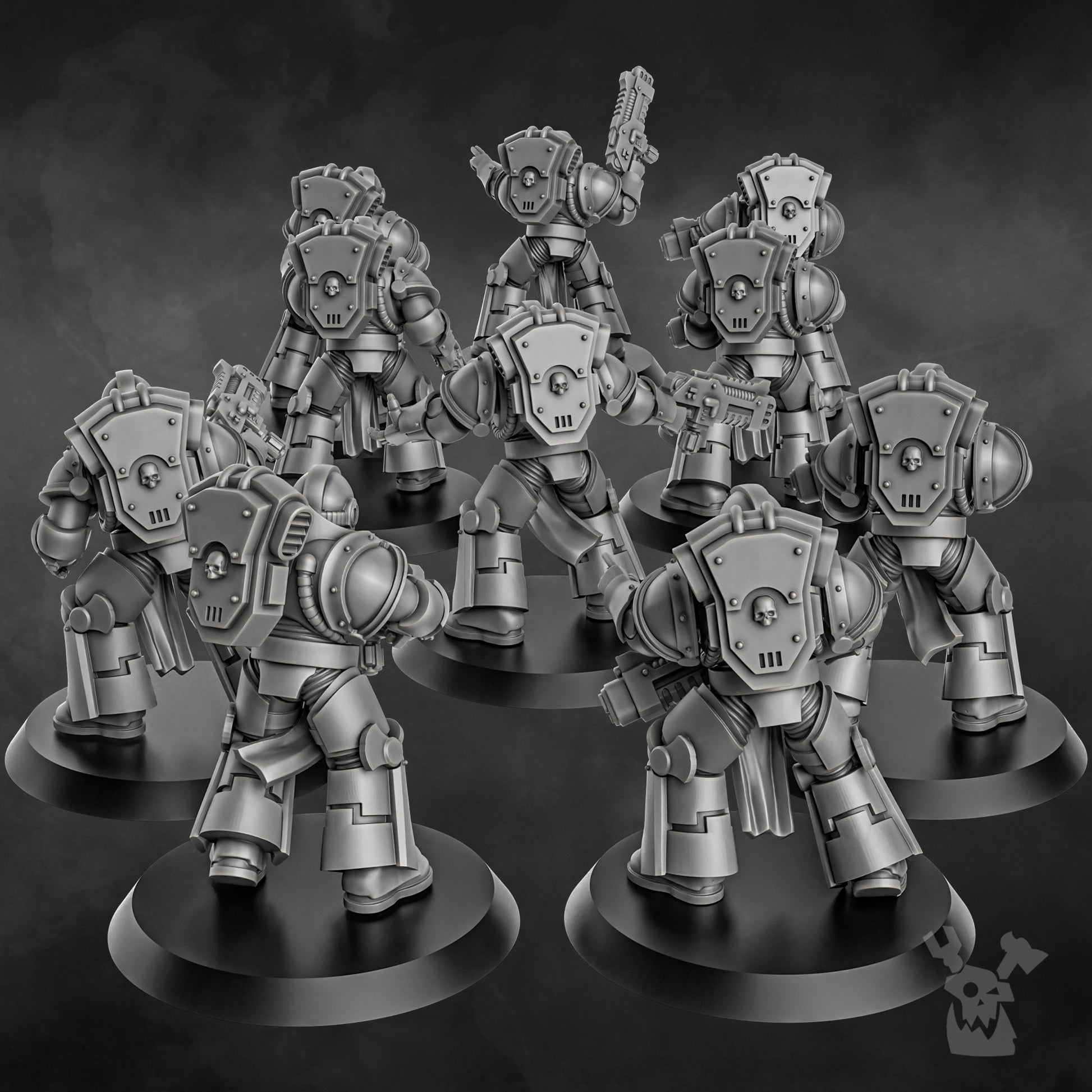 This squad of 10 pre-assembled heavy infantry comes armed with energy rifles and sealed in bulky power armor. Each model is a single-piece sculpt with dynamic posing—ideal for sci-fi armies needing plasma-style fire support without the hassle of multipart assembly.